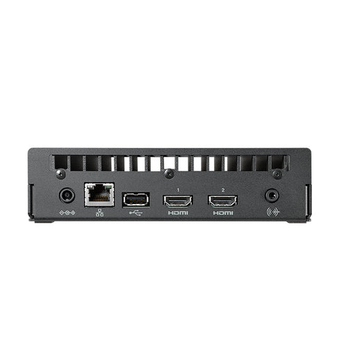 Minimal Footprint for Mounted Solutions The DuraVision DX0212-IP can be easily mounted to the back of any VESA-supported monitor using the VOP-01 mounting plate. The box's slim, compact design allows it to fit perfectly behind a monitor that is mounted on the wall or ceiling, occupying minimal space in the installation area. Direct attachment to the monitor also helps to keep cabling controlled to the designated space, reducing overall clutter.