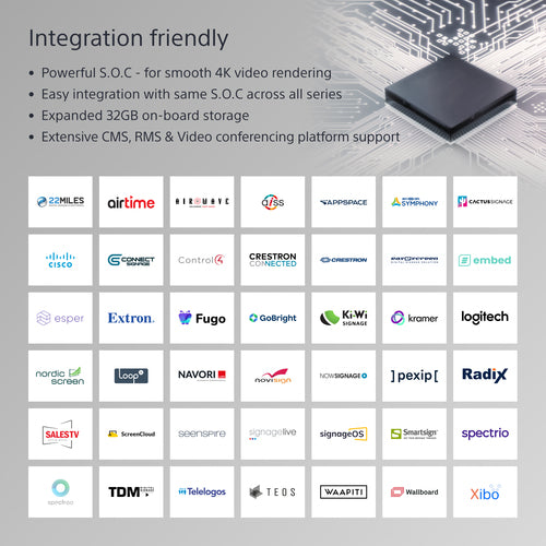 Flexible content layout In-built support for HTML5 lets you use BRAVIA to display interactive signage content without needing a dedicated set-top box, media player or PC. On-screen content can be freely laid out using 4K video, still images or even with the HDMI input.