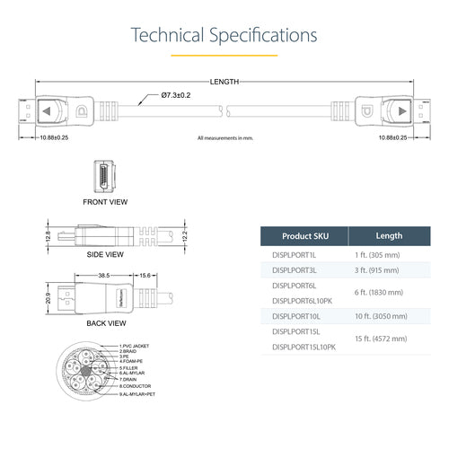 StarTech.com 6ft DisplayPort 1.2 Cable - 10 Pack - 4K Ultra HD