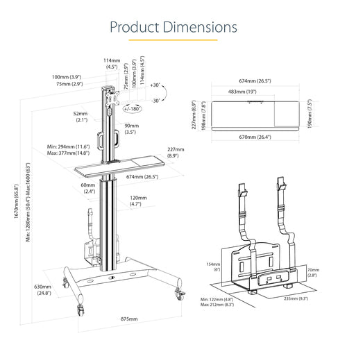 StarTech.com WKSTNCART Ergonomic Mobile Workstation Cart - Adjustable Desk on Wheels