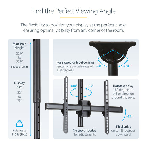 StarTech.com FPCEILPTBSP Signage Display Mount - Durable, Adjustable Design
