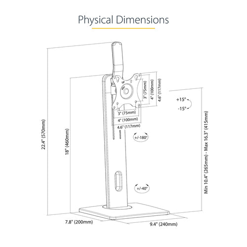 Swivel angle range -40 - 40°