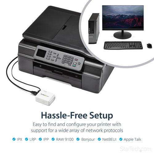 | Supported network protocols | TCP/IP, IPX, NetBEUI, AppleTalk, SNMP, SMB over IP |